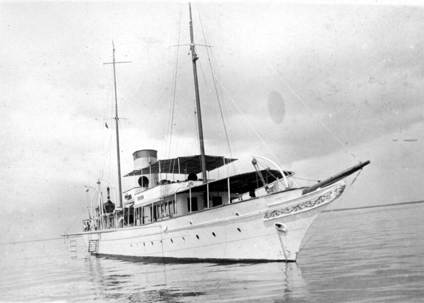 The yacht of the "Principal," Barron G. Collier, in New York. Photographed on occasion of one of his visits, in front of the Ten Thousand Islands.