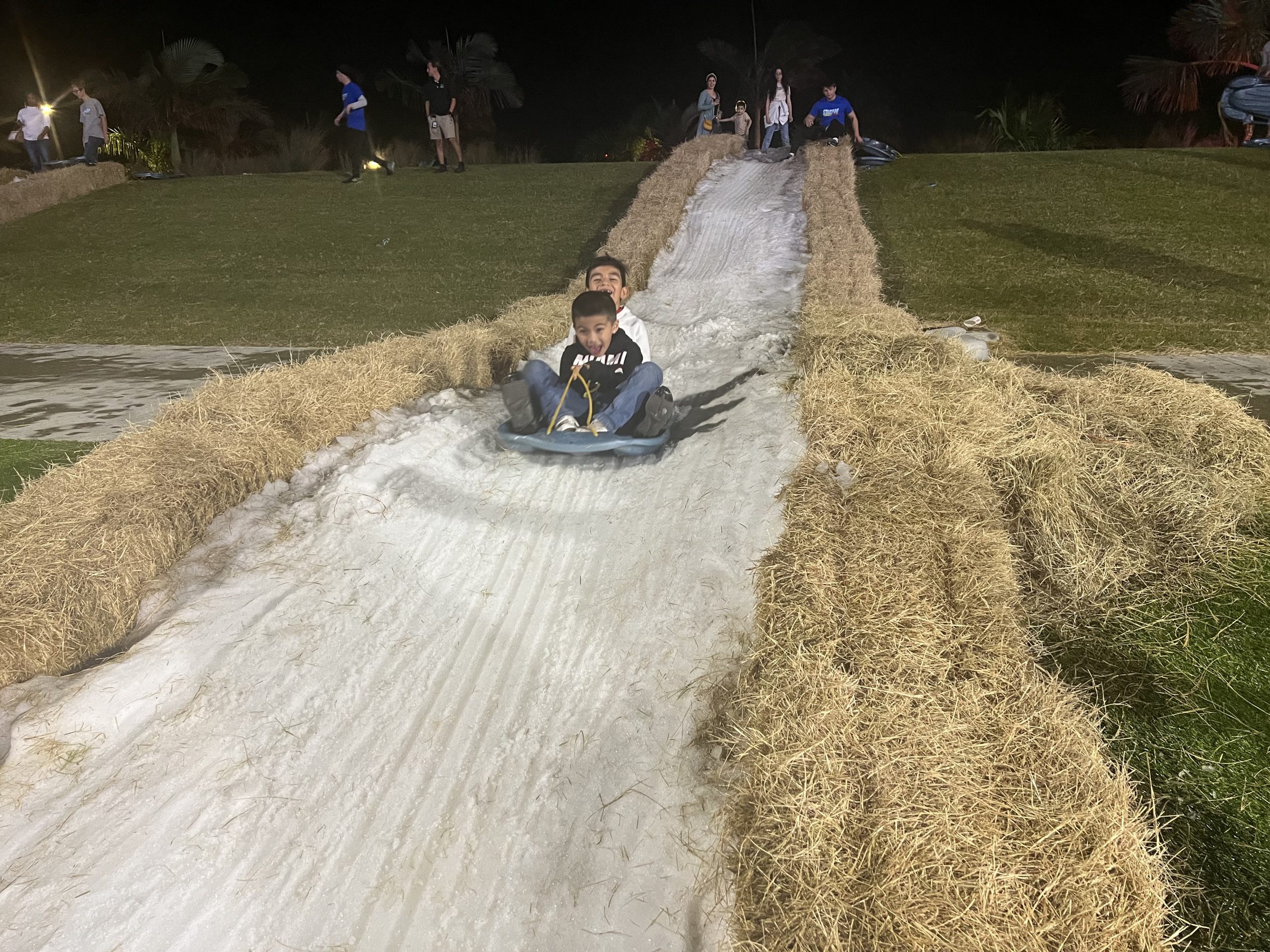Students sitting atop the Immokalee High School sign at the main entrance. School located at 701 Immokalee Drive #5 in Immokalee. Courtesy of Collier County Museums.